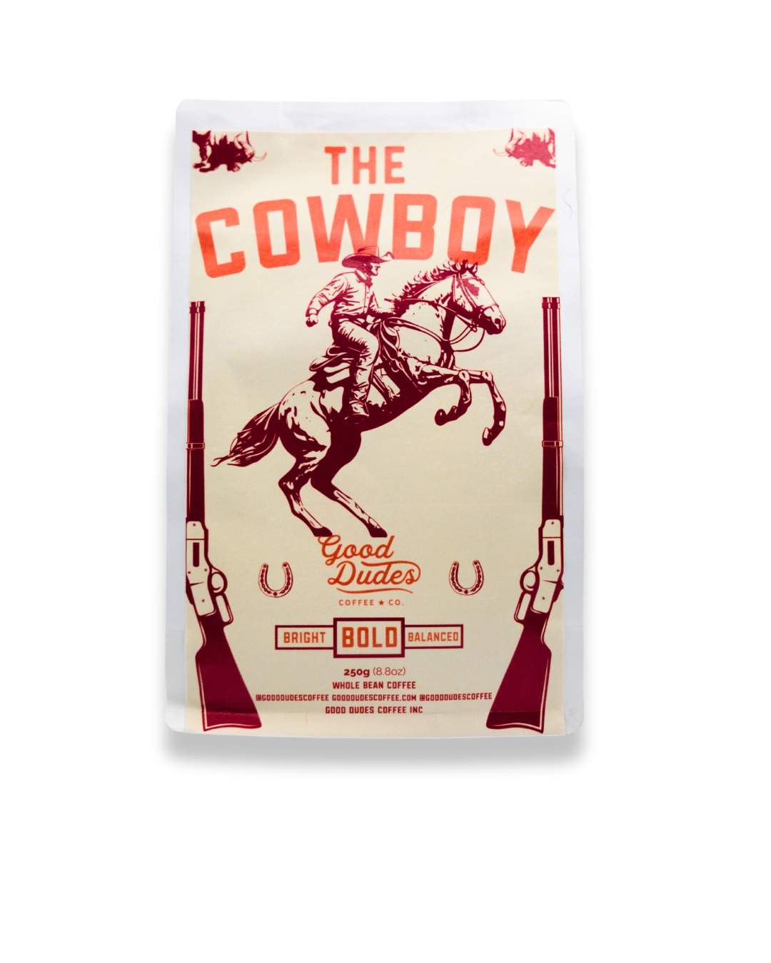 The Cowboy is strong and steady. Someone you can rely on, a proper workhorse. We utilize fresh seasonal components direct from producers at origin. We'd qualify it as our "dark" roast.